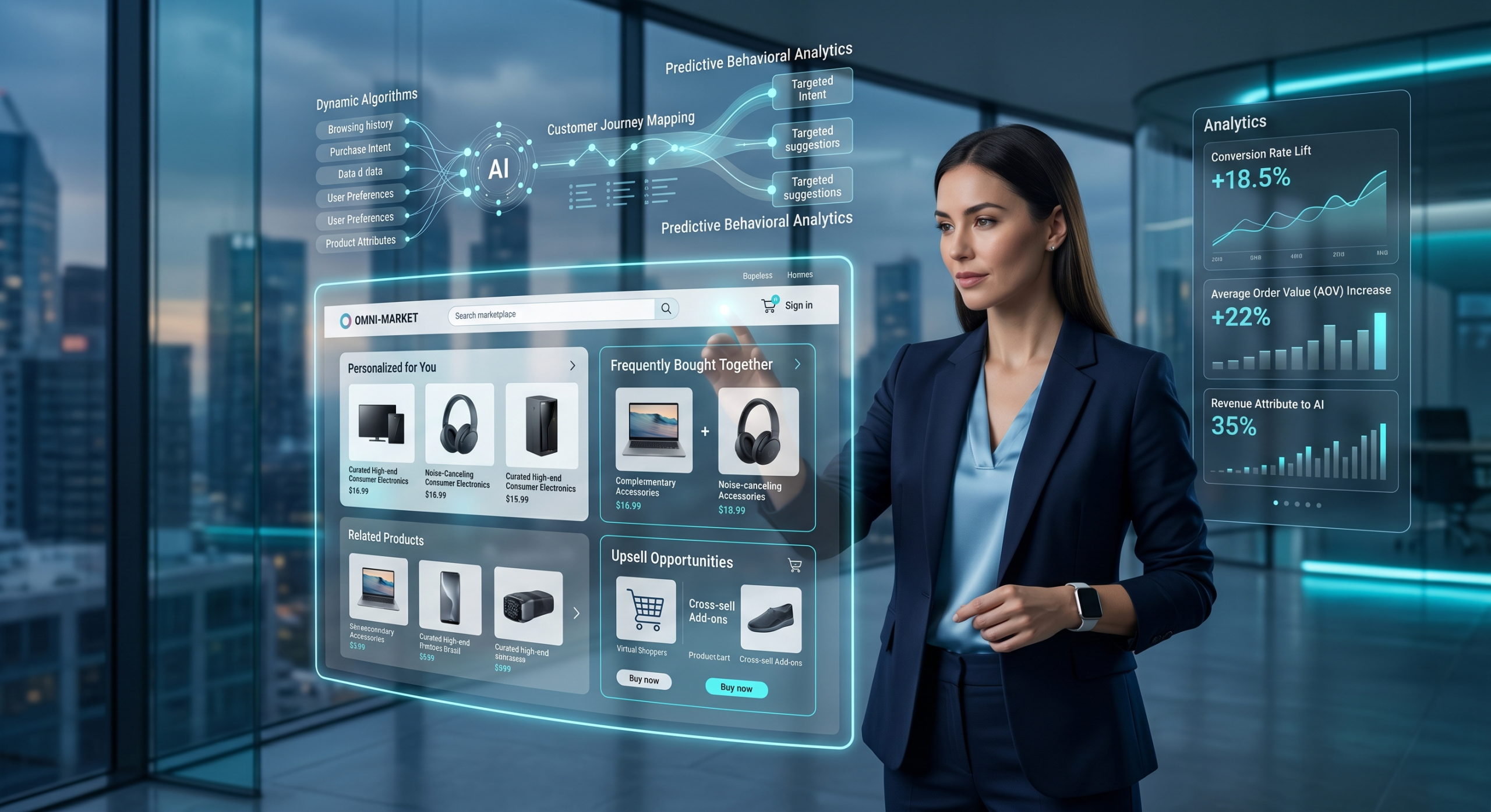 Sem inteligência artificial, personalização em larga escala seria praticamente impossível. Imagine um marketplace com: